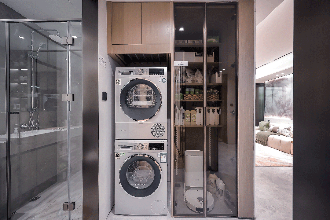 立体家政间做为现代家居的匠心之做,精准契合了现代栖身收纳和空间的火急需求。通过立体空间设想,不只极大地优化了空间操纵率,更实现了衣物从洗涤到烘干的无缝跟尾,让日常衣物处置变得敏捷而简洁。